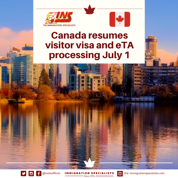 Canada is once again processing online applications for visitor visas and electronic travel authorizations as of July 1.